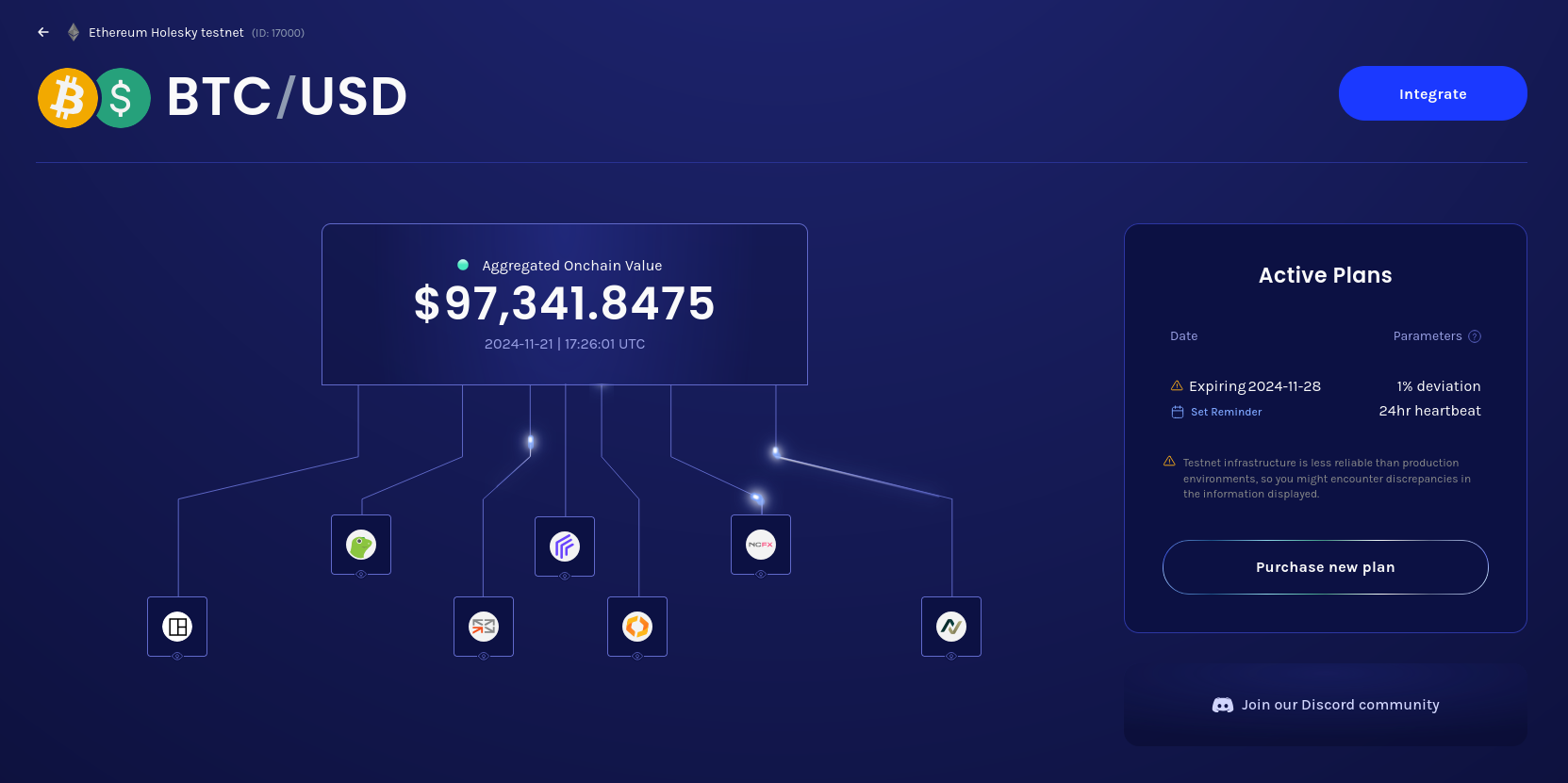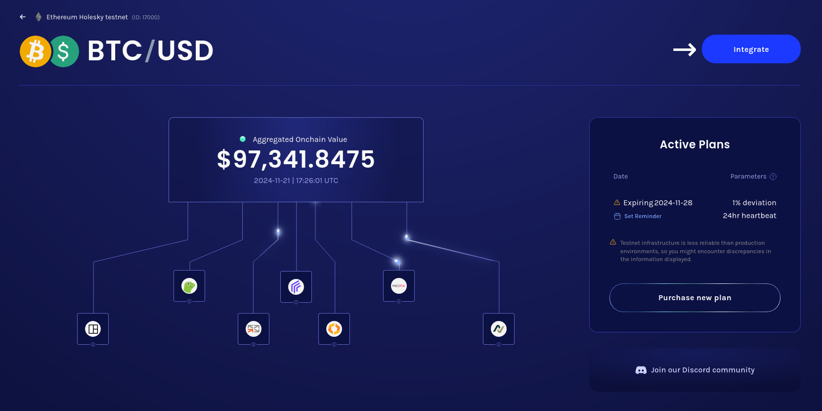 If you pick a data feed that is already active on the network, you will be taken to the data feed page directly. Otherwise, you will be taken to the activation page first. To experience the entire flow, we recommend picking a data feed that is not active.